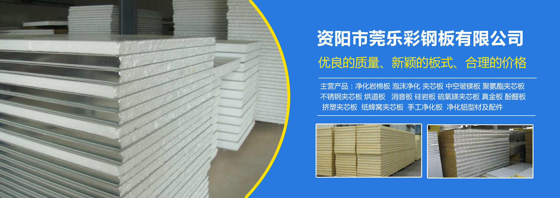 資陽(yáng)市莞樂彩鋼板有限公司成立于2017年03月08日,位于資陽(yáng)市樂至縣西郊工業(yè)園,廠區(qū)占地面積2500多平方,擁有多條彩鋼板生產(chǎn)線。交通十分便利,地理位置優(yōu)越。公司從事凈化巖棉板、泡沫凈化夾芯板、中空玻鎂板、聚氨酯夾芯板、不銹鋼夾芯板、烘道板、音板、硅巖板、硫氧鎂夾芯板真金板、酚醛板、擠塑夾芯板、紙蜂窩夾芯板、手工凈化板、凈化鋁型材及生產(chǎn)和銷售的新型建材企業(yè)。擁有一批專業(yè)過硬、作風(fēng)穩(wěn)健的生產(chǎn)技術(shù)人員和經(jīng)營(yíng)管理精英,公司內(nèi)部良好的組織氛圍、優(yōu)良的企業(yè)文化和科學(xué)的經(jīng)營(yíng)管理,使公司成為一家活力的現(xiàn)代化經(jīng)營(yíng)企業(yè)。